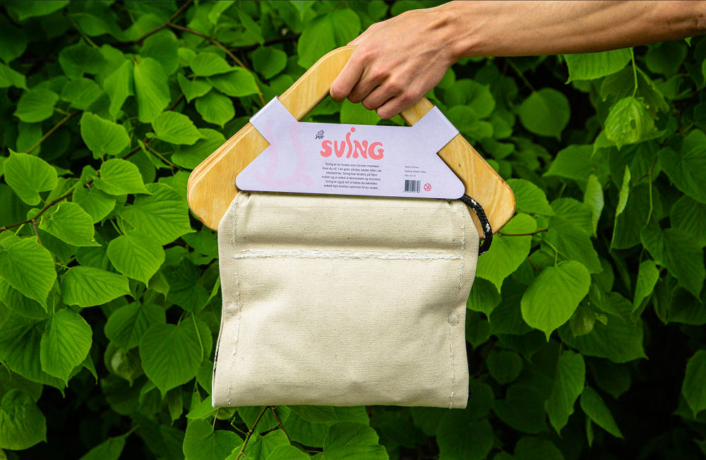 Sving is designed to be mounted in a variety of settings, whether attached to a branch, pole, column, or tree trunk. Its flexible construction allows for multiple ways of use, and it is both easy to assemble and disassemble. The swing encourages active outdoor play and invites children to explore their surroundings through movement and physical engagement. The fabric can be folded neatly into a bag, making it easy to transport, while the robust construction allows it to support the weight of several children at once.